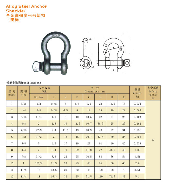 合金高強度弓形卸扣(美標)